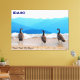 Three Canada Geese (Branta canadensis) contemplate heading out into the incoming surf on the shore of Lake Pend Oreille at Sandpoint, ID; blue mountains are in the distance. Customisable text reading, "IDAHO" also appears. Customise by adding your own additional text.
