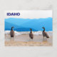 A digital rendering of three Canada Geese contemplate heading out into the incoming surf on the shore of Lake Pend Oreille at Sandpoint, ID; blue mountains are in the distance. Text reading "IDAHO" also appears.