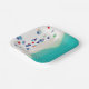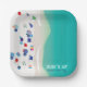 Surf's Up Beach Party Paper plates. Design features a aerial view drawing of the beach and surfers on the back. Customise using the template provided to be a prefect for your party.