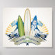 Decorate your walls with this unique surfboard print. Featuring your text on the two front banners that wrap three different style surfboards.