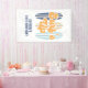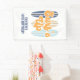Surf's Up! surfboards beach birthday banner in navy blue and light blue.