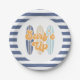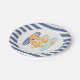 Surf's Up! surfboards beach birthday plates in navy blue and light blue and orange.