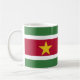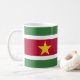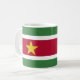 Celebrate the vibrant culture and diverse heritage of Suriname with this beautifully designed ceramic coffee mug featuring the iconic Suriname flag. The bold green, white, red, and yellow stripes, along with the central golden star, symbolise the nation's unity, peace, and hope for the future. Perfect for enjoying your morning coffee, tea, or any favourite beverage, this mug adds a touch of Surinamese pride to your daily routine.
