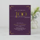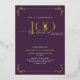 This beautiful invitation features hand lettered calligraphy artfully presenting 'one hundred' in luxurious hand lettering against a purple background, adorned with delicate swirls in the corners top and bottom in real gold foil, along with the name and the number 100. This image will have all your guests excitedly anticipating your fabulous one hundredth festivities!