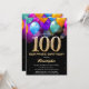 Surprise 100th Birthday Black and Gold Balloons Invitation