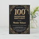 Surprise 100th Birthday Black and Gold Glitter Invitation