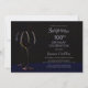 Invite your friends and loved ones to help celebrate someone's special birthday with a surprise 100th birthday party with this modern black and blue wine glass invitation.