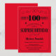 Surprise 100th Birthday Invitation Black and Red Typography. Black and Red Background. Adult Birthday. Male Men or Women Birthday. Kids Boy or Girl Lady Teen Teenage Bday Invite. 13th 15th 16th 18th 20th 21st 30th 40th 50th 60th 70th 80th 90th 100th. Any Age. For further customisation, please click the "Customise it" button and use our design tool to modify this template.