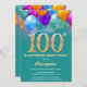 Surprise 100th Birthday Teal and Gold Balloons Invitation