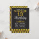 Surprise 13th Birthday Invitation with Black and Yellow Chevron. Chalkboard. Kids Birthday. Boy or Girl Bday Invite. For further customisation, please click the "Customise it" button and use our design tool to modify this template.