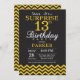 Surprise 13th Birthday Black and Yellow Chevron Invitation