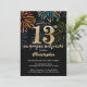 Surprise 13th Birthday Black Gold Rainbow Firework Invitation
