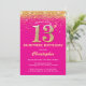 Surprise 13th Birthday Hot Pink and Gold Glitter Invitation
