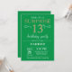 Surprise 13th Birthday Invitation with Green and Gold Glitter Background. Kids Birthday. Boy or Girl Lady Teen Teenage Bday Invite. Any age. For further customisation, please click the "Customise it" button and use our design tool to modify this template.