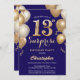 Surprise 13th Birthday Navy Blue and Gold Balloons Invitation