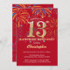 Surprise 13th Birthday Red & Gold Rainbow Firework Invitation