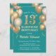Surprise 13th Birthday Teal and Gold Balloons Invitation
