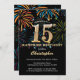 Surprise 15th Birthday Black Gold Rainbow Firework Invitation