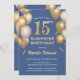 Surprise 15th Birthday Blue and Gold Balloons Invitation