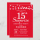 Surprise 15th Birthday Invitation with String Lights. Red Background. Kids Birthday. Boy or Girl Bday Invite. 13th 15th 16th 18th 20th 21st 30th 40th 50th 60th 70th 80th 90th 100th, Any age. For further customisation, please click the "Customise it" button and use our design tool to modify this template.