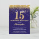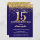 Surprise 15th Birthday Navy Blue and Gold Glitter Invitation