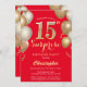 Surprise 15th Birthday Red and Gold Balloons Invitation