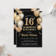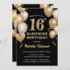 Surprise 16th Birthday Black and Gold Balloons Invitation
