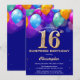 Surprise 16th Birthday Navy Blue and Gold Balloons Invitation