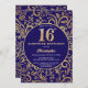 Surprise 16th Birthday Navy Blue and Gold Floral Invitation