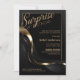 Organise your surprise milestone 18th birthday celebration in style with our chic and sophisticated black party invitation. With its customisable text, you can personalise the invitation. This invitation features a fine gold frame that encloses the text, adding a touch of luxury to your special occasion. The gold and grey abstract wavy ribbon design adds a modern and stylish look to the invitation and creates a sense of flow and movement. The overall design is understated yet beautiful, making it perfect for those who prefer a more refined aesthetic.