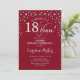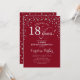 Elegant design in dark red and faux glitter silver. Features script font and diamonds confetti. Cheers to 18 Years! Message me if you need further customization.