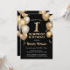 Surprise 1st Birthday Black and Gold Balloons Invitation