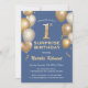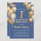 Surprise 1st Birthday Blue and Gold Balloons Invitation
