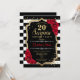 Feminine black, white, red design with faux glitter gold. Features black and white stripes, red roses, script font and confetti. Perfect for an elegant birthday party. Can be personalized to show any age. Message me if you need further customization.