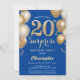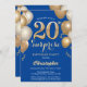 Surprise 20th Birthday Blue and Gold Balloons Invitation