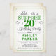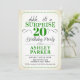 Simple classy design in white, green and black. Features elegant script font. Surprise bday celebration for man or woman. Can be customized into any age!