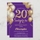 Surprise 20th Birthday Purple and Gold Balloons Invitation