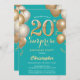 Surprise 20th Birthday Teal and Gold Balloons Invitation
