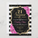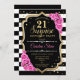 Feminine black, white, pink design with faux glitter gold. Features black and white stripes, pink roses, script font and confetti. Perfect for an elegant birthday party. Can be personalized to show any age. Message me if you need further customization.