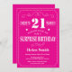 Surprise 21st Birthday Invitation Hot Pink and White Typography. Hot Pink Background. Adult Birthday. Male Men or Women Birthday. Kids Boy or Girl Lady Teen Teenage Bday Invite. 13th 15th 16th 18th 20th 21st 30th 40th 50th 60th 70th 80th 90th 100th. Any Age. For further customisation, please click the "Customise it" button and use our design tool to modify this template.