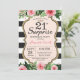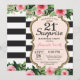 Surprise 21st Birthday Invitation for Women. Black and Gold Birthday Party Invite. Gold Glitter. Pink Watercolor Floral Flower. Black and White Stripes. Printable Digital. For further customisation, please click the "Customise it" button and use our design tool to modify this template.