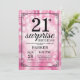 Surprise 21st Birthday Invitation with Pink String Lights with Pink Glitter Background. Pink Birthday. Adult Birthday. Men or Women Bday Invite. 13th 15th 16th 18th 20th 21st 30th 40th 50th 60th 70th 80th 90th 100th, Any age. For further customisation, please click the "Customise it" button and use our design tool to modify this template.