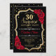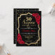 Feminine black, red design with faux glitter gold. Features red roses, script font and confetti. Perfect for an elegant birthday party. Can be personalized to show any age. Message me if you need further customization.