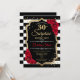 Elegant black white red design with faux glitter. Black and white stripes with red roses. Perfect for an elegant birthday party.