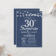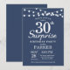 Surprise 30th Birthday Invitation with String Lights. Blue Background. Men or Women Birthday. 13th 15th 16th 18th 20th 21st 30th 40th 50th 60th 70th 80th 90th 100th, Any age. For further customisation, please click the "Customise it" button and use our design tool to modify this template.