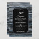 A rustic silver-bordered blue barn wood surprise 30th birthday invitation with the white text highlighted on a black background.