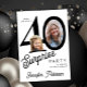 Trendy bold typography women's 40th birthday surprise party invitation with 2 photos and modern white and black design in retro style script. Easy to personalize with your text and pictures.++++ Digital download available,