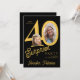 Trendy bold typography women's 40th birthday surprise party invitation with 2 photos and modern gold black design in retro style script. Easy to personalize with your text and pictures.++++ Digital download available,