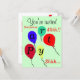 Surprise 40th Birthday Party. Personalise for any age. Colourful flying birthday balloons including red, blue, yellow on a light mint green background. The word Party is written across balloons. Backside has party date and location details against white background. Original Artwork Design by TamiraZDesigns.