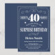 Surprise 40th Birthday Invitation Blue and White Typography. Blue Background. Adult Birthday. Male Men or Women Birthday. Kids Boy or Girl Lady Teen Teenage Bday Invite. 13th 15th 16th 18th 20th 21st 30th 40th 50th 60th 70th 80th 90th 100th. Any Age. For further customisation, please click the "Customise it" button and use our design tool to modify this template.